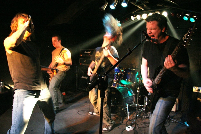 CORINNE: Jos and Serge went on with Outburst. Jos also plays in Crustacean in a Slayer cover band and in Motley Crust a glamrock cover band. Serge is also very busy with Milkman a crossover band. Richard went on with Robotmonster that is already defunct nowadays. And for myself: I play percussions in a percussion band called: Hihi.